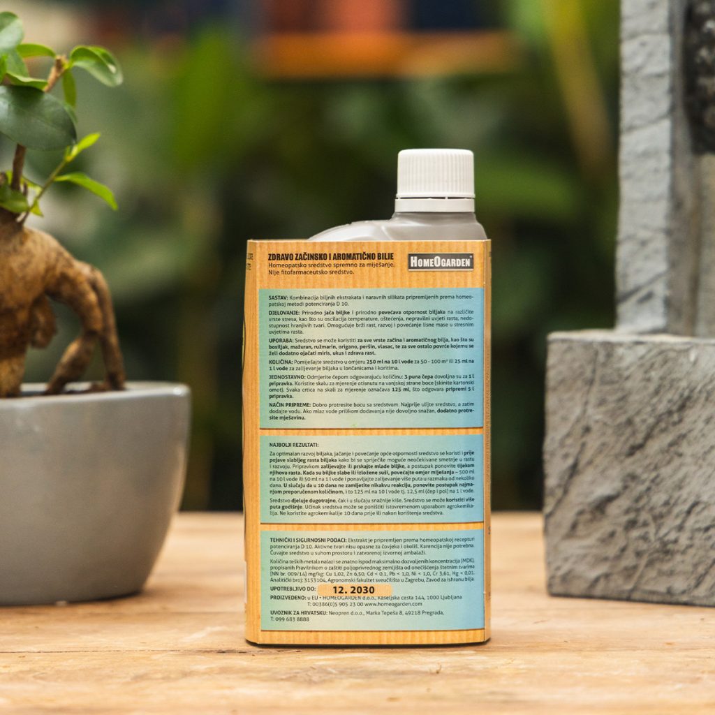 Začinsko bilje zahtijeva posebnu prehranu. Homeogarden gnojivo potiče bujno lišće i jača eterična ulja bosiljka, peršina, mente, lavande i ružmarina. Tekuća formula za brzu apsorpciju. 500 ml za cijelu sezonu.