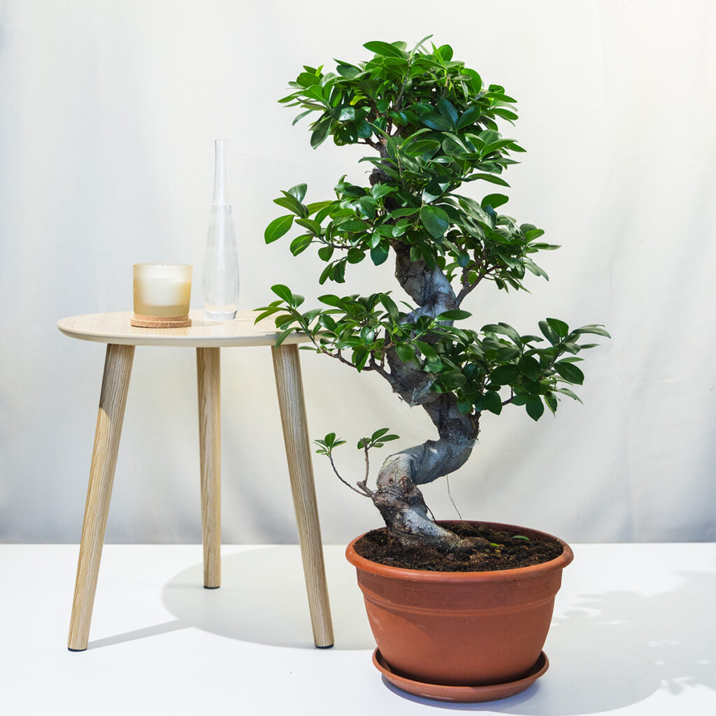 Ginseng bonsai dobio je ime po debelom, kvrgavom korijenju koje podsjeća na ginseng korijen – izbočeno iznad tla poput minijaturnog drevnog stabla. Iznad tog fascinantnog korijenja raste gusta, okrugla krošnja malih, sjajnih, tamnozelenih listova koja daje biljci izgled stoljetnog stabla u minijaturnom izdanju.