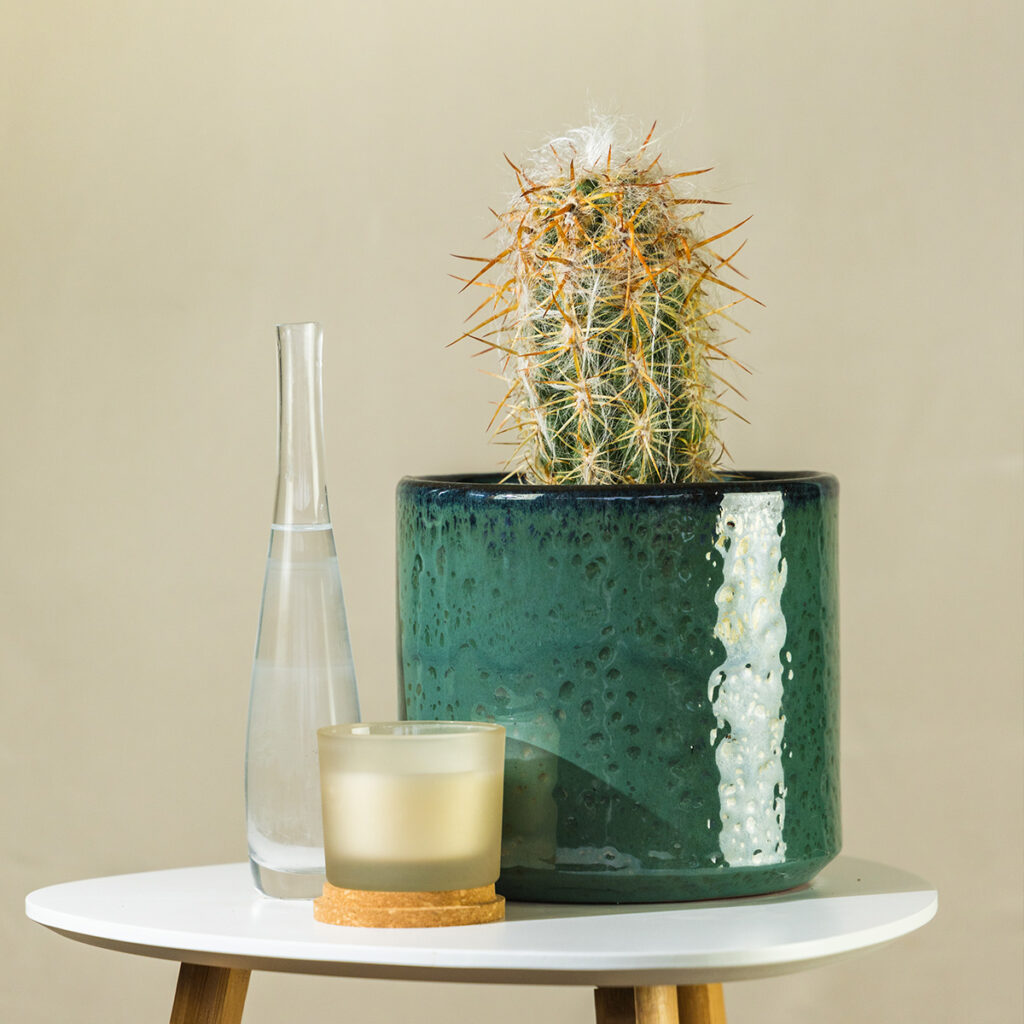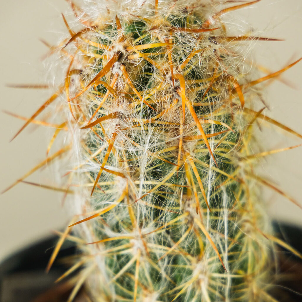 Ova vuna nije samo dekorativna. U prirodi štiti biljku od ekstremnnog UV zračenja, noćnog mraza i gubitka vlage. U vašem domu stvara fascinantan vizualni efekt – zeleni stupić kaktusa obavijen mekim bijelim nitima, s crveno-smeđim bodljama koje proviruju poput skulpture.