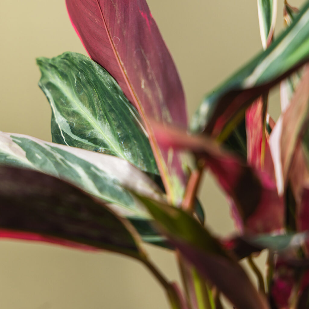 Donja strana listova otkriva intenzivnu ružičastu boju koja se prelijeva kada se listovi podignu. Calathea Triostar je biljka koja izgleda jednako spektakularno iz svakog kuta – pravi 360-stupanjski showstopper.