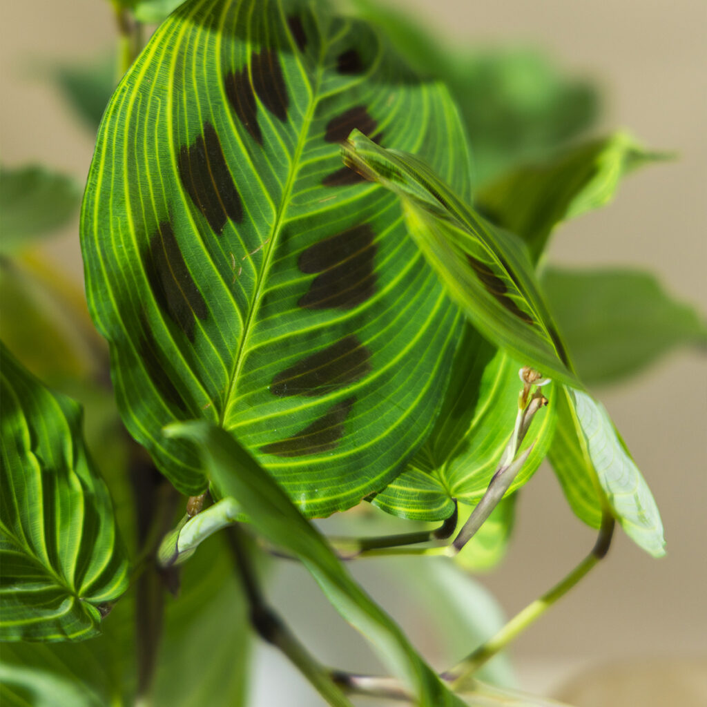 Podrijetlom iz tropskih kišnih šuma Brazila, Maranta voli vlažnost i polusjenu – upravo uvjete kakve nalazimo u većini stanova. Savršena za kupaonicu, kuhinju ili bilo koji prostor s umjerenim svjetlom.