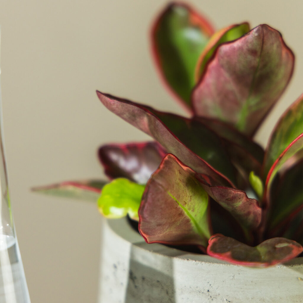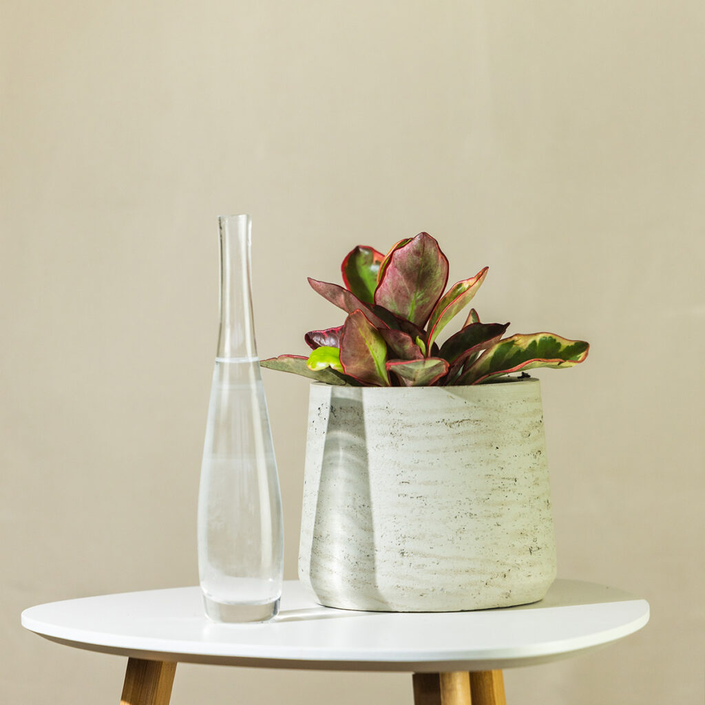 Ova kompaktna tropska biljka iz obitelji paprenjača ima mesnate, ovalne listove s kremastim rubovima koji prelaze u nježno ružičastu. Svaki list je poput akvarela – nijanse se razlikuju ovisno o svjetlu, pa biljka doslovno mijenja izgled kroz sezone.