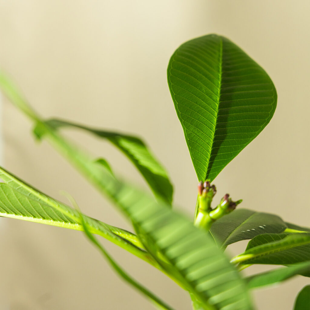 Plumeria alba je biljka za sunčane prostore. Što više svjetla dobiva, to obilnije cvjeta. Tijekom zime gubi listove i ulazi u mirovanje – savršeno normalan dio njenog ciklusa koji prethodi novom procvatu.