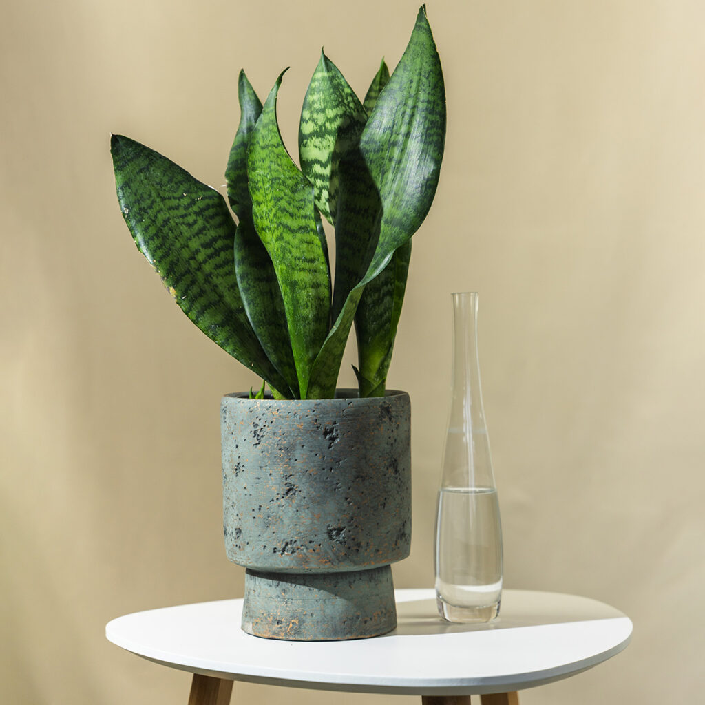 Sansevieria zeylanica je vječna klasika među sobnim biljkama – snažna, elegantna i gotovo neuništiva. Njeni uspravni, mačeviti listovi s prepoznatljivim valovitim uzorkom u nijansama zelene i srebrne stvaraju dojam prirodne umjetnosti.